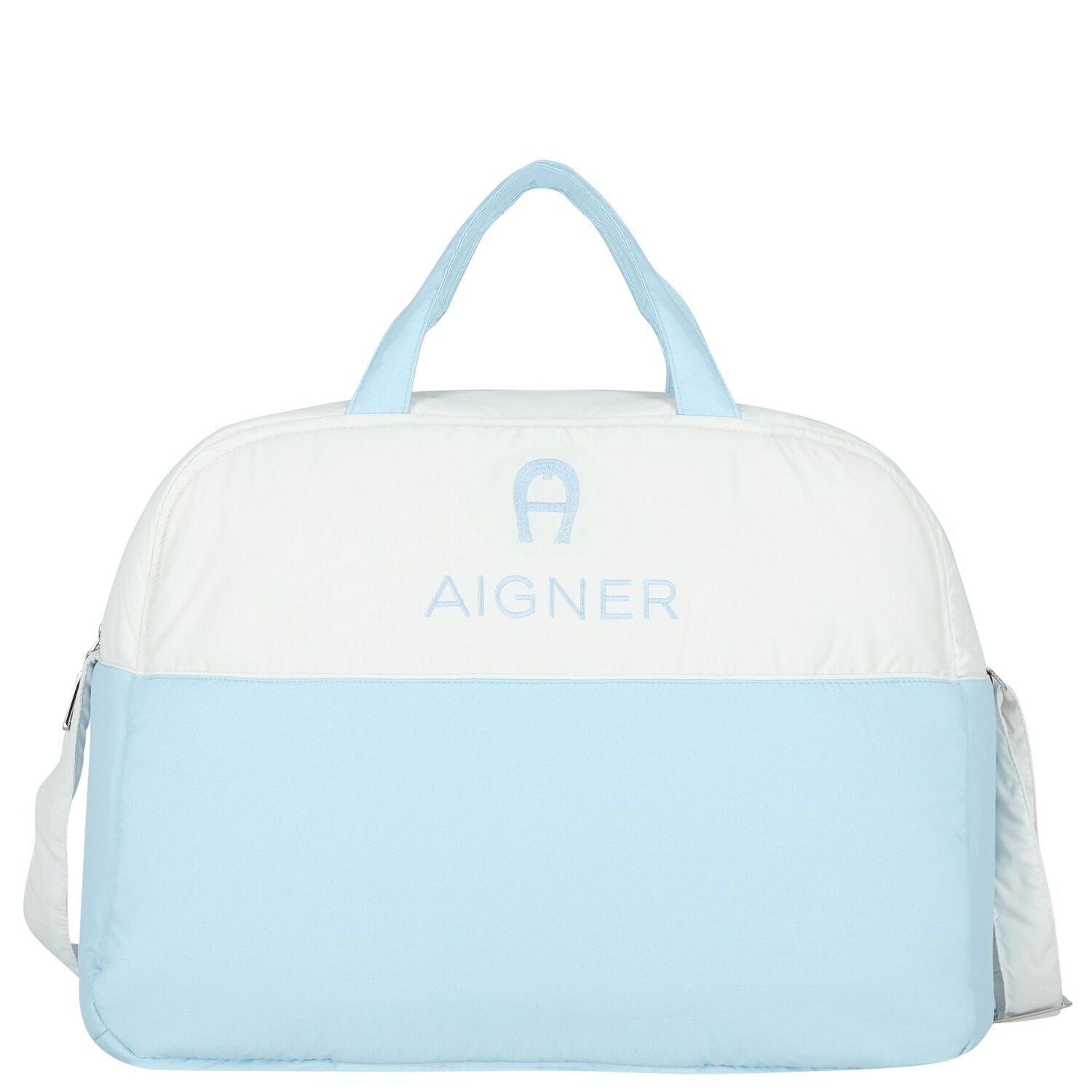 AIGNER Baby Boys White & Baby Blue Logo Changing Bag with Mat
