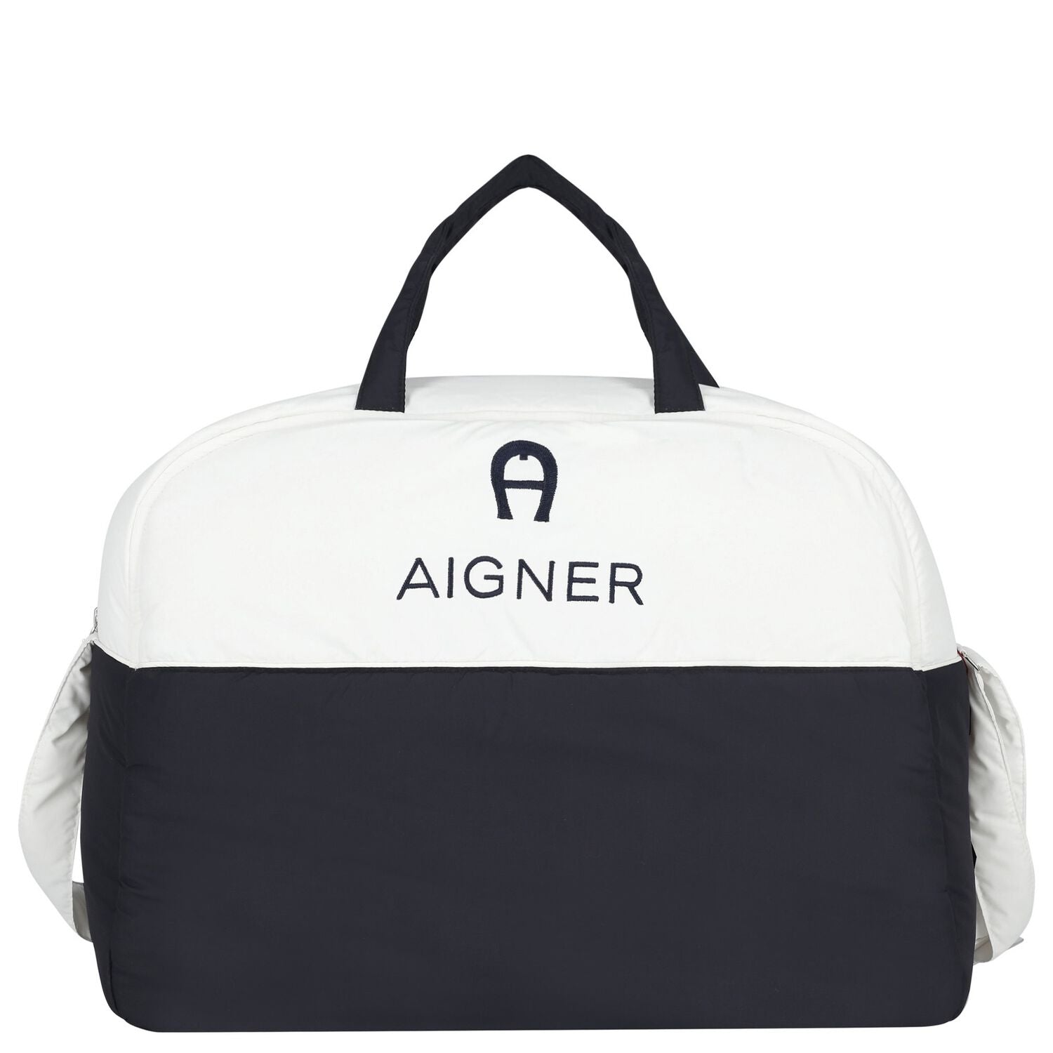 AIGNER White & Navy Blue Logo Baby Changing Bag