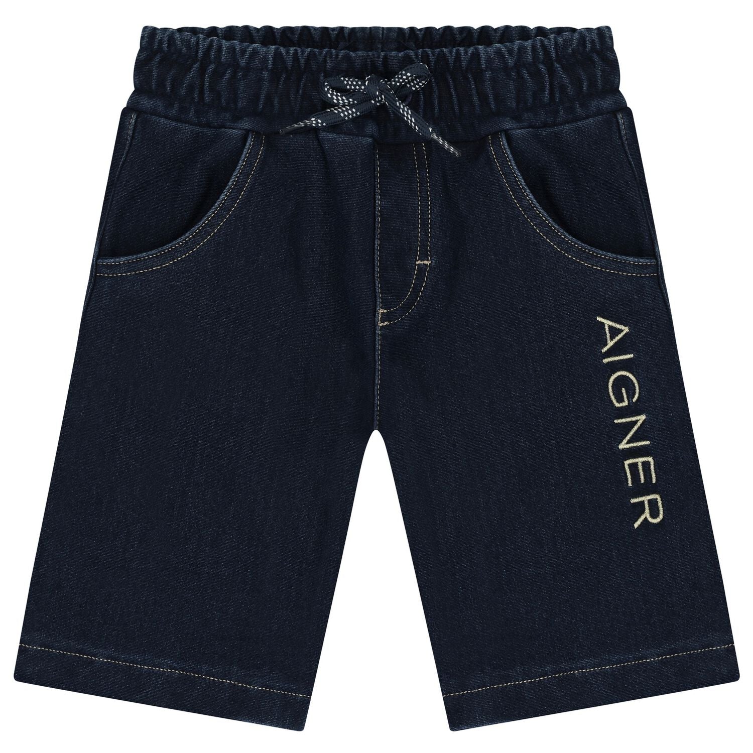 AIGNER Younger Boys Navy Blue Logo Denim Shorts