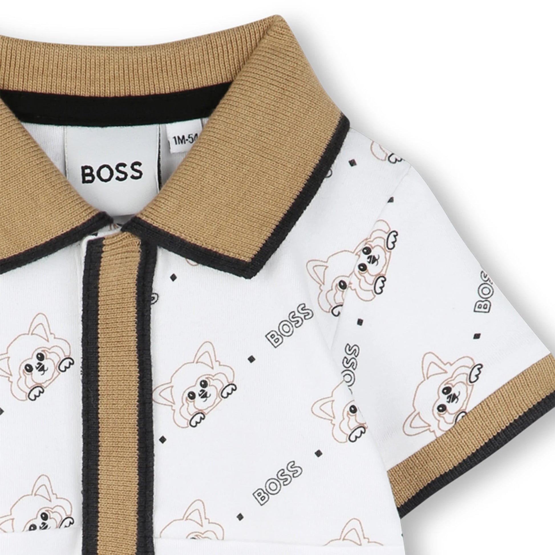 BOSS Baby Boys White/Beige Interlock Short Dungarees
