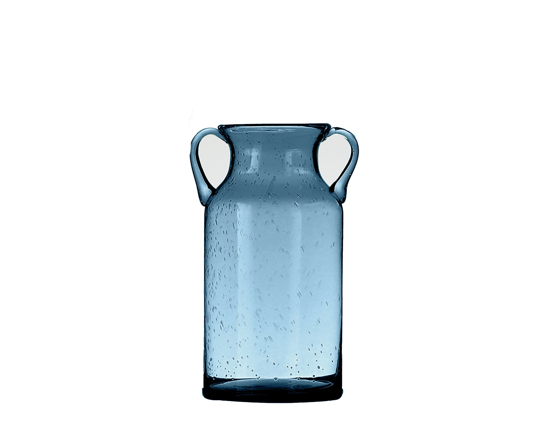Elevate your home décor with this artisanal flower vase, handcrafted from clear glass with distinctive air bubbles and a subtle bluish-green hue