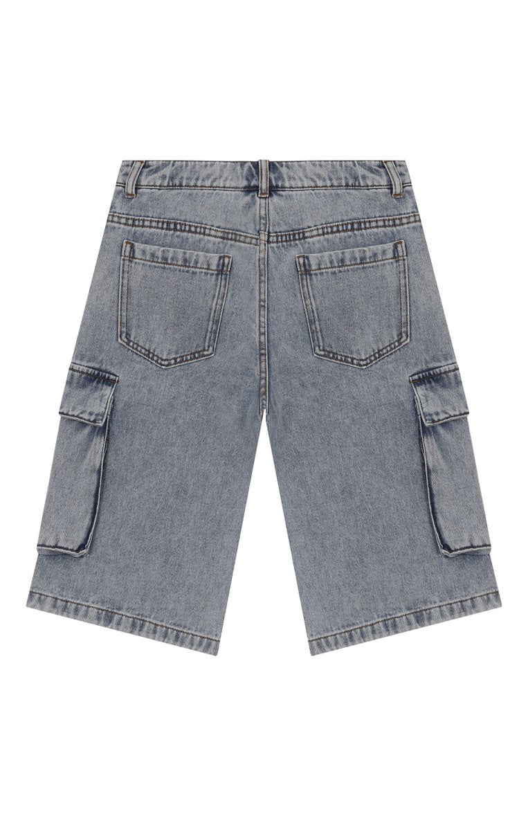 MOSCHINO Boys Blue Logo Denim Cargo Shorts