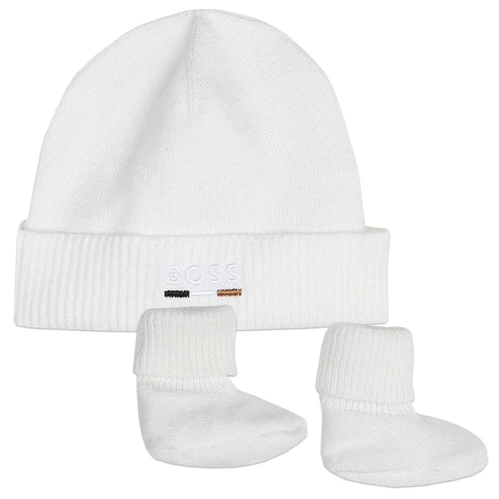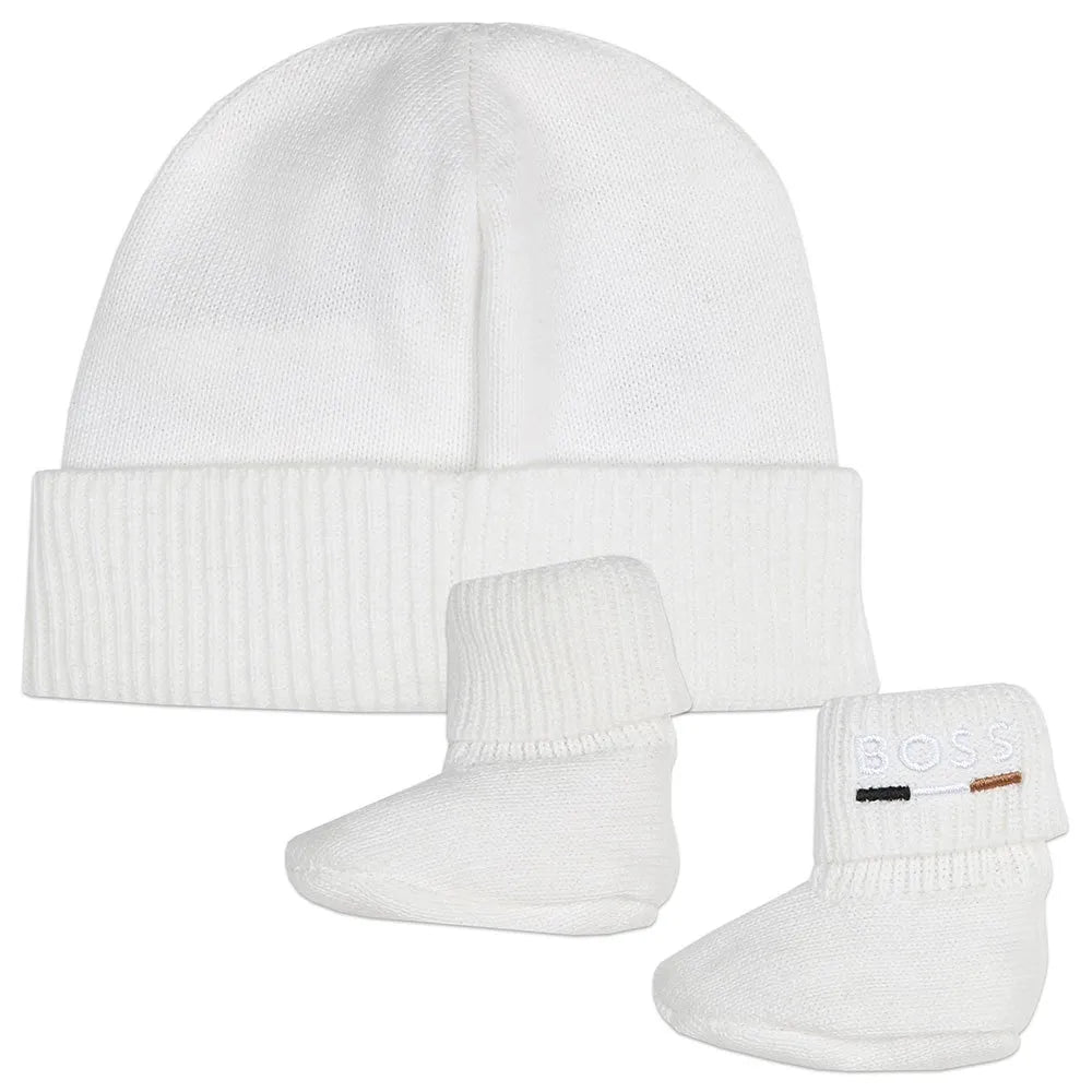 BOSS Baby Boys White Knit Hat & Slipper Set
