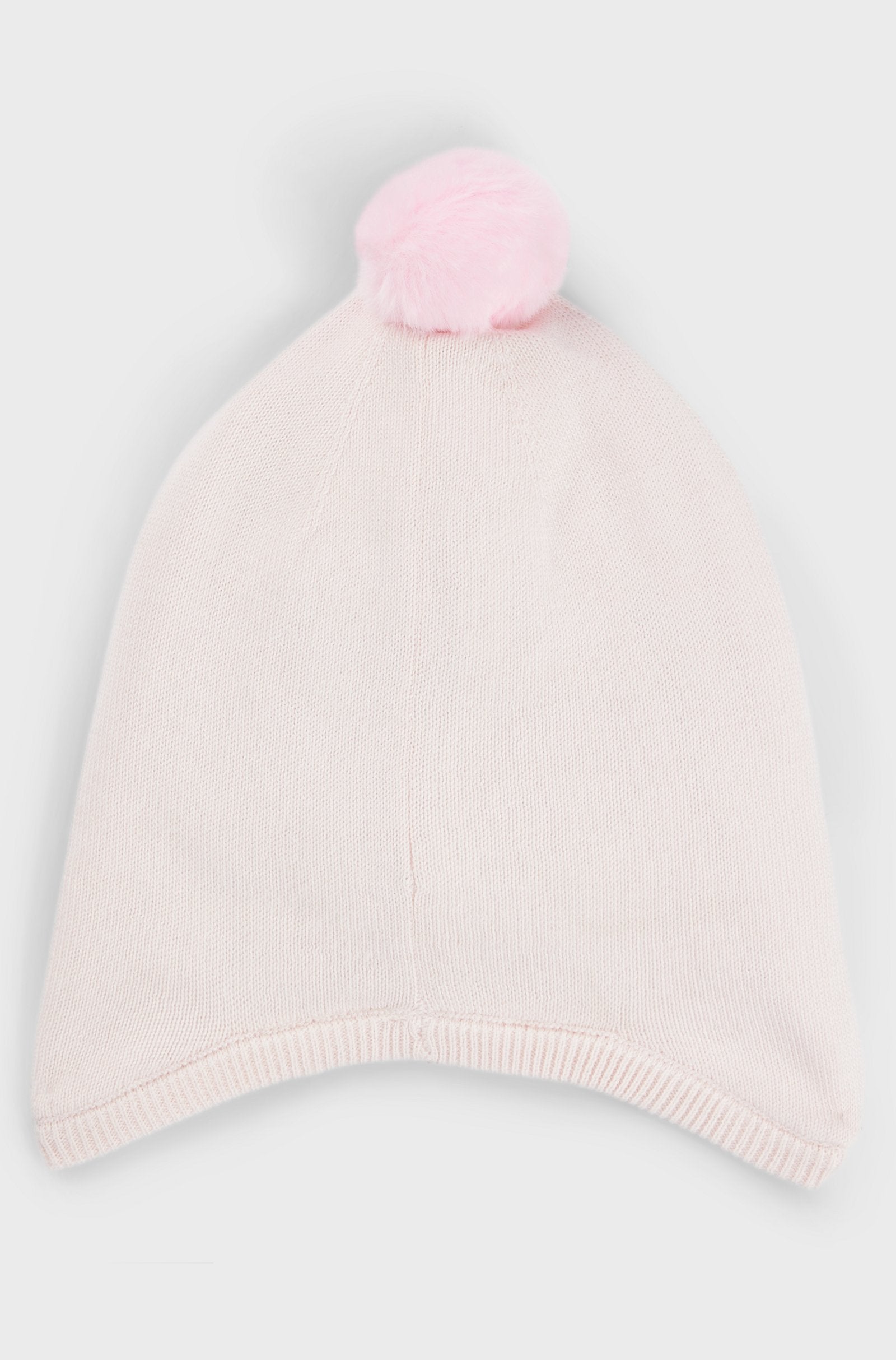 Baby Girl Pink Hat in Cotton with Pompom and Embroidered Logo