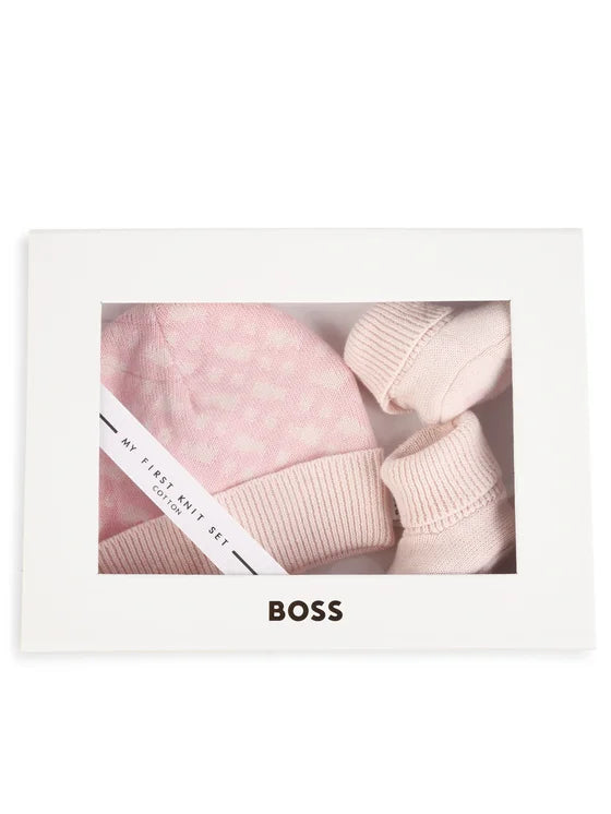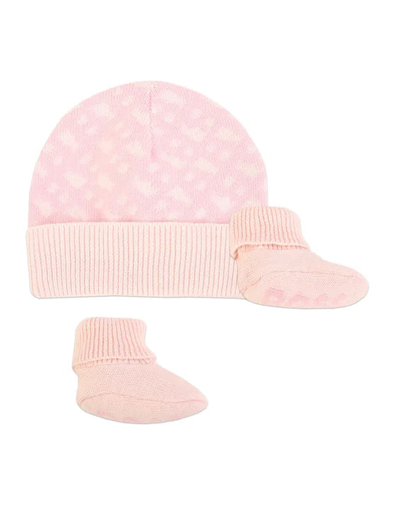 BOSS Baby Girls Pink Knit Hat & Slipper Set