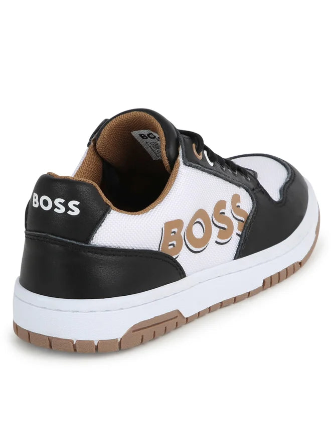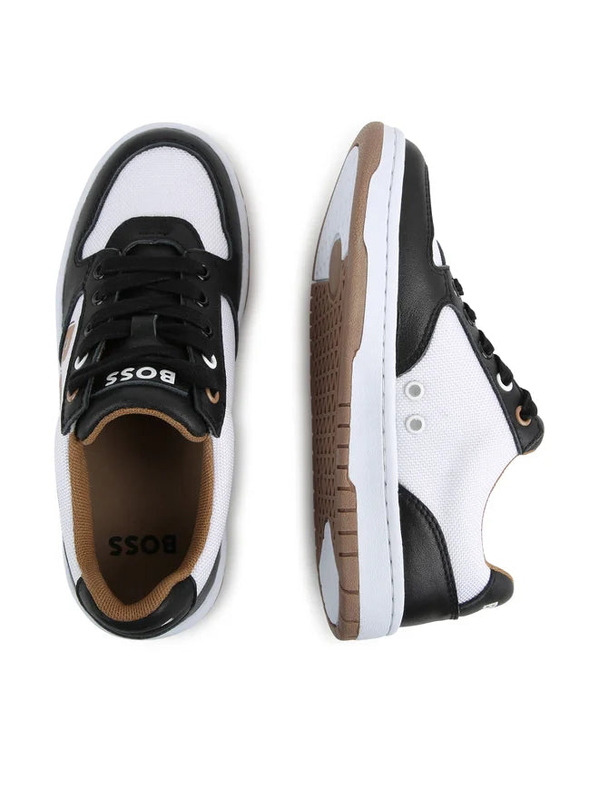 BOSS Unisex Black & White with Beige Sole Logo Trainers