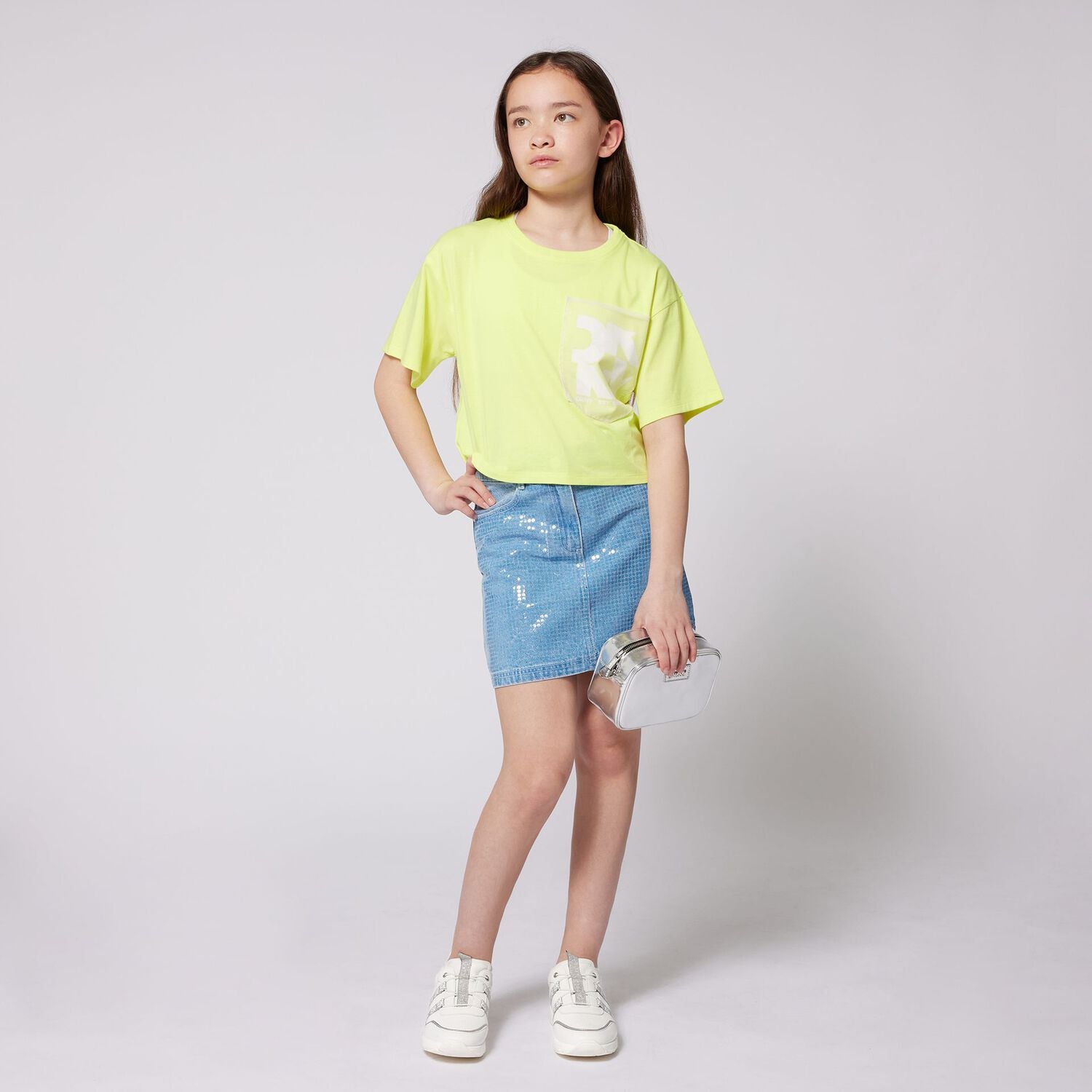 Girls Silver Faux Leather Bag with Belt