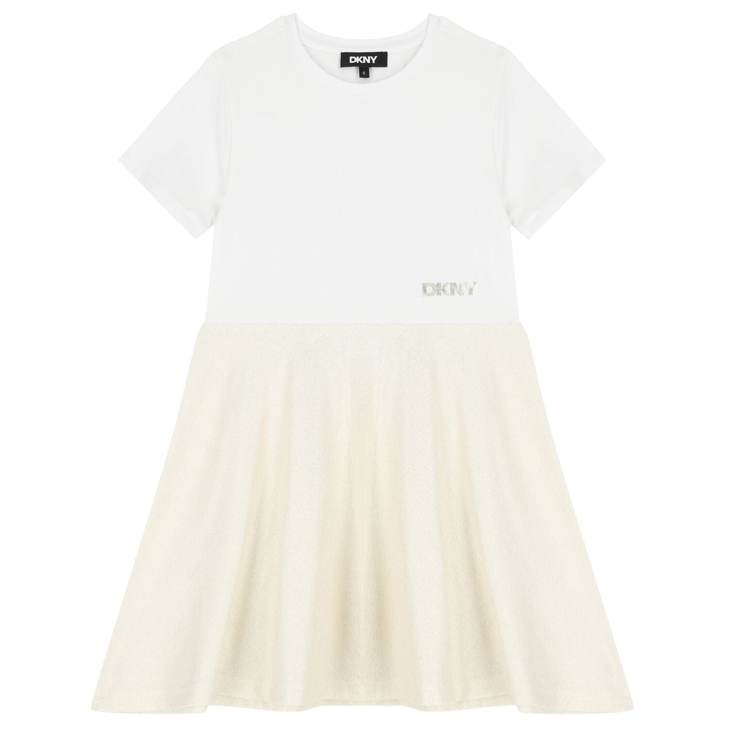 DKNY Girls Short Sleeved White/Gold Dress