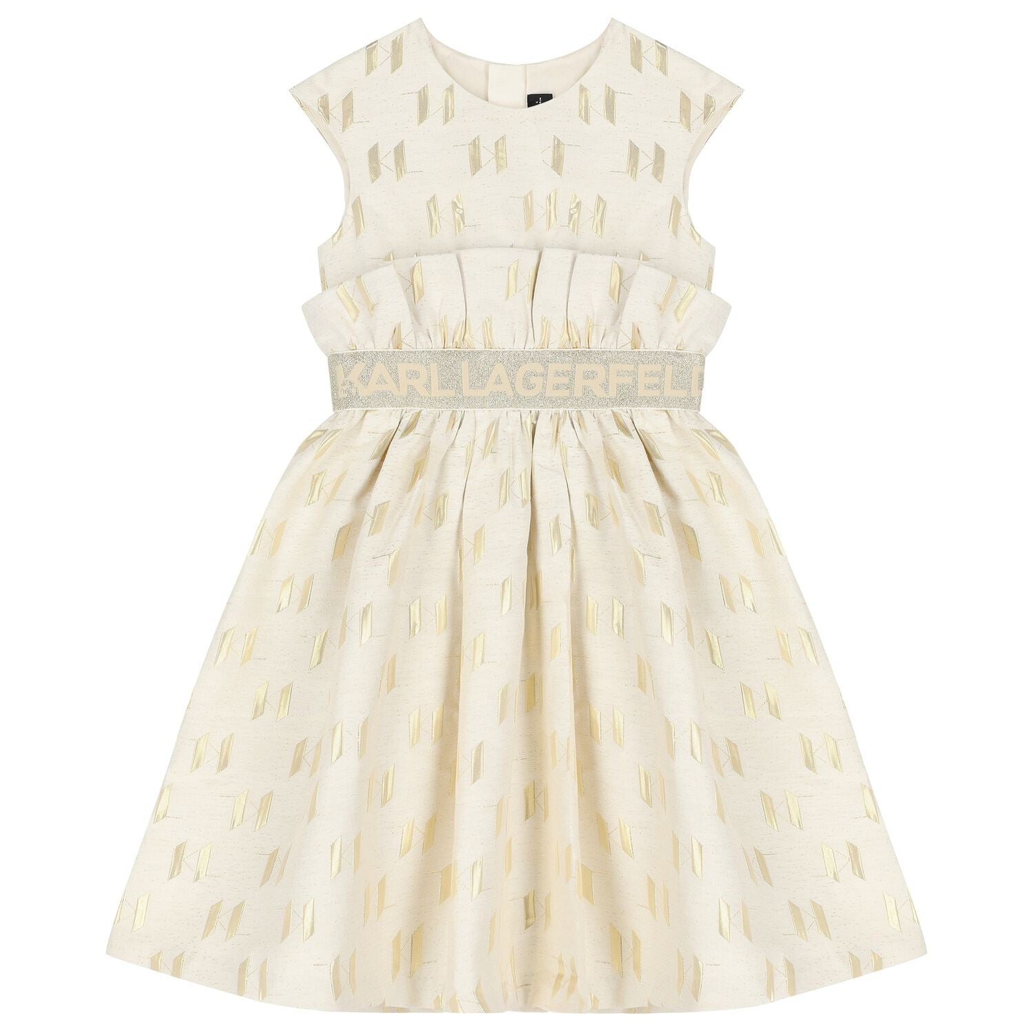 KARL LAGERFELD Girls Ivory and Gold Logo Dress