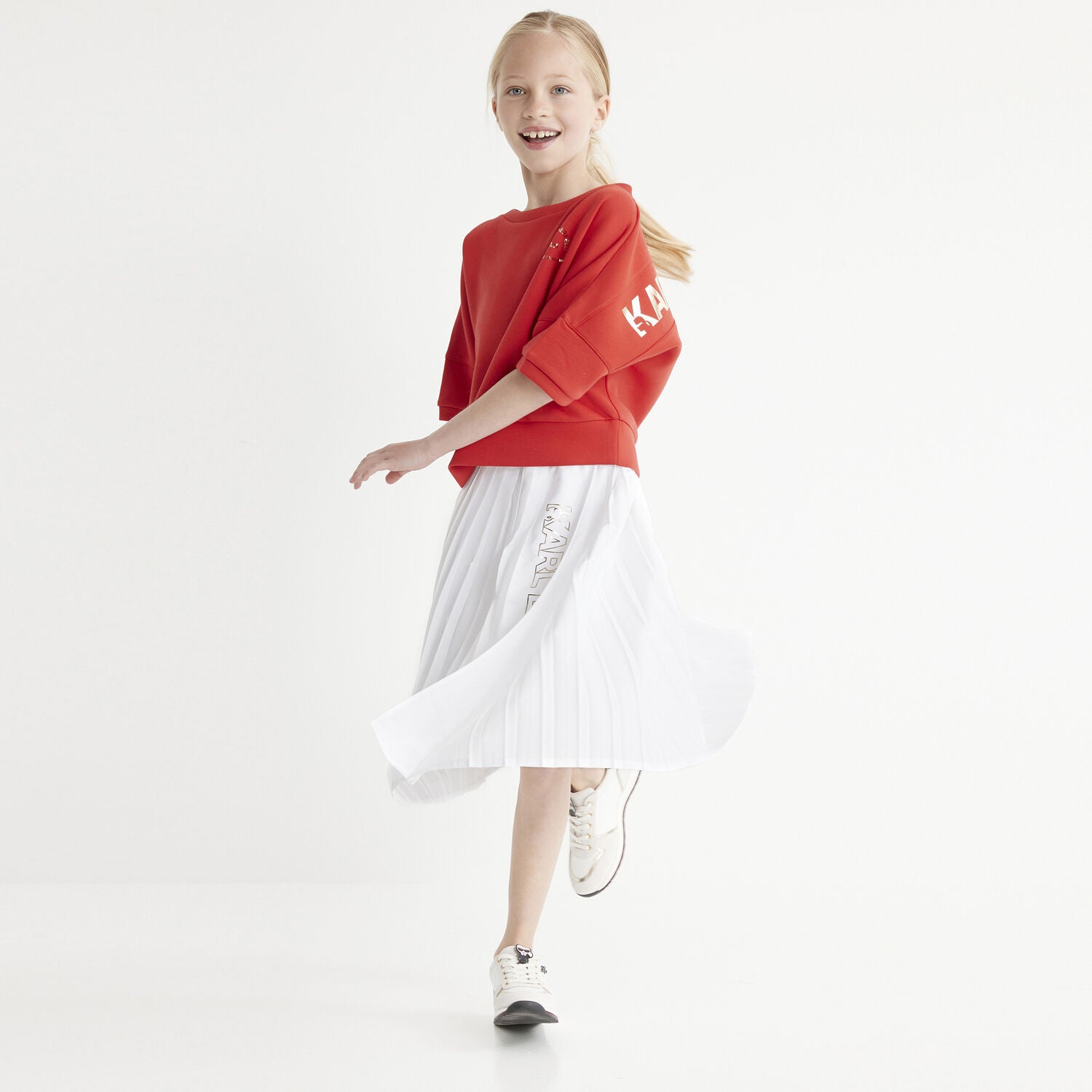 KARL LAGERFELD Girls White Logo Pleated Skirt