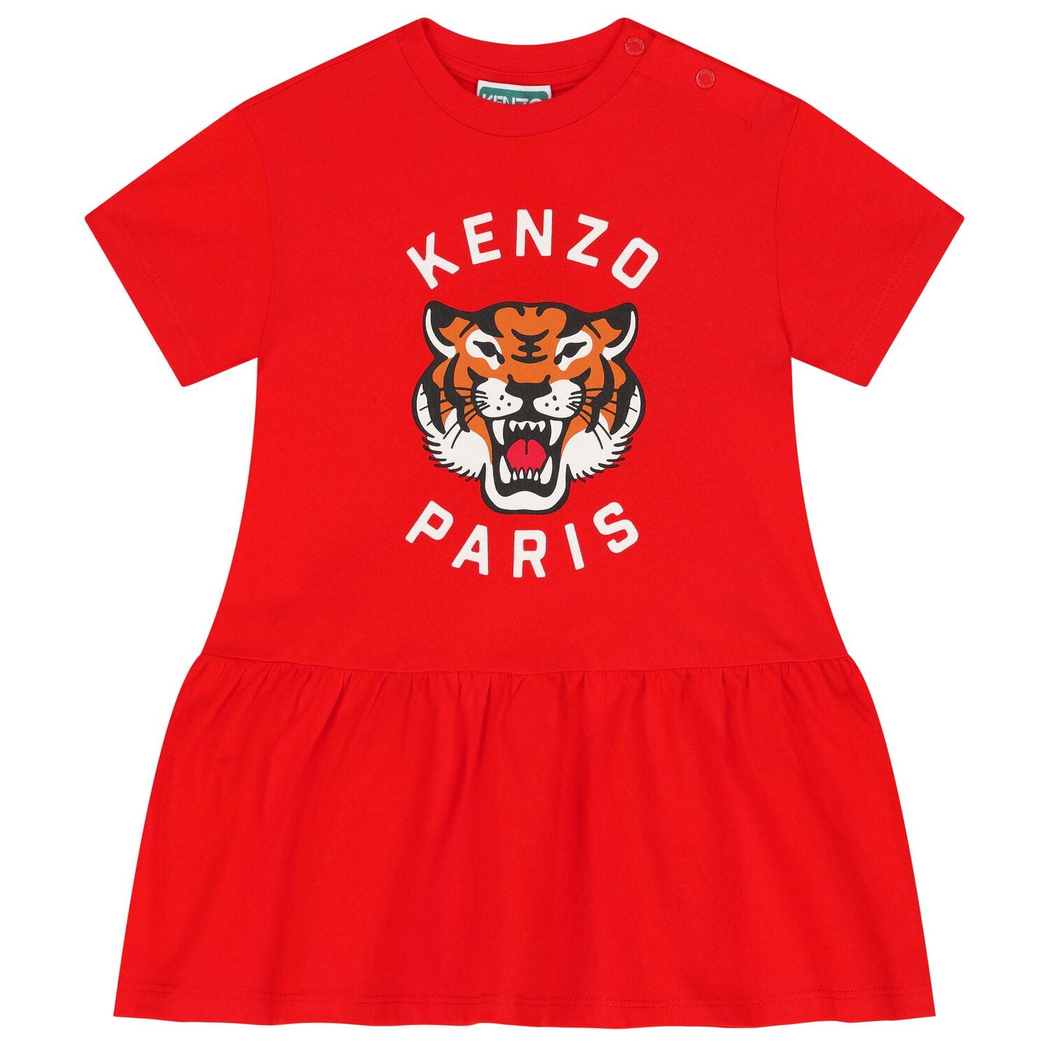 KENZO KIDS Younger Girls Red Tiger Logo Dress