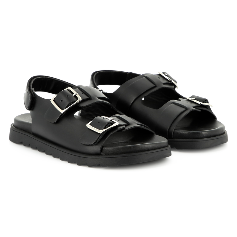 Buckled Leather Black Sandals
