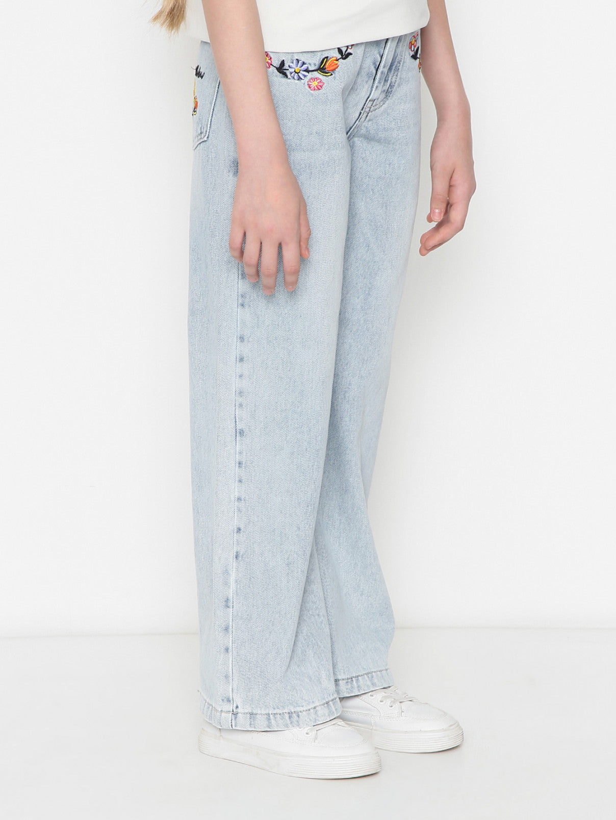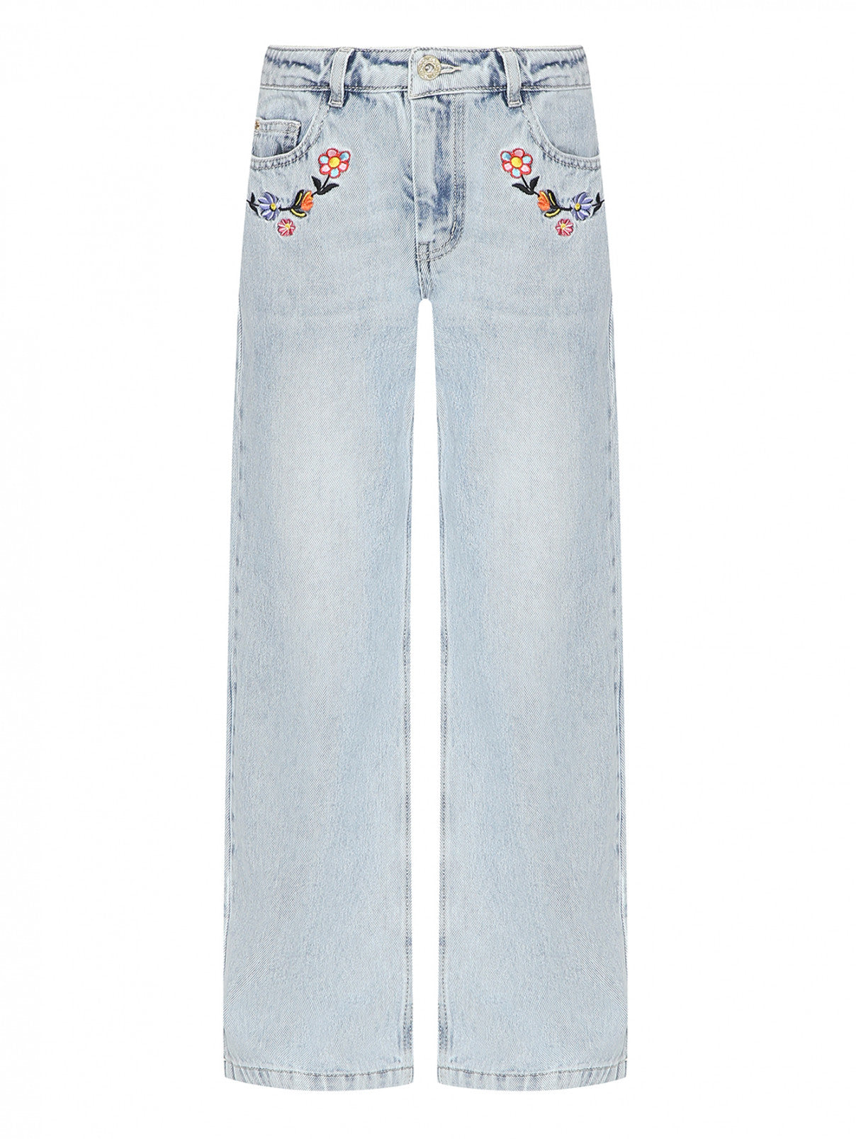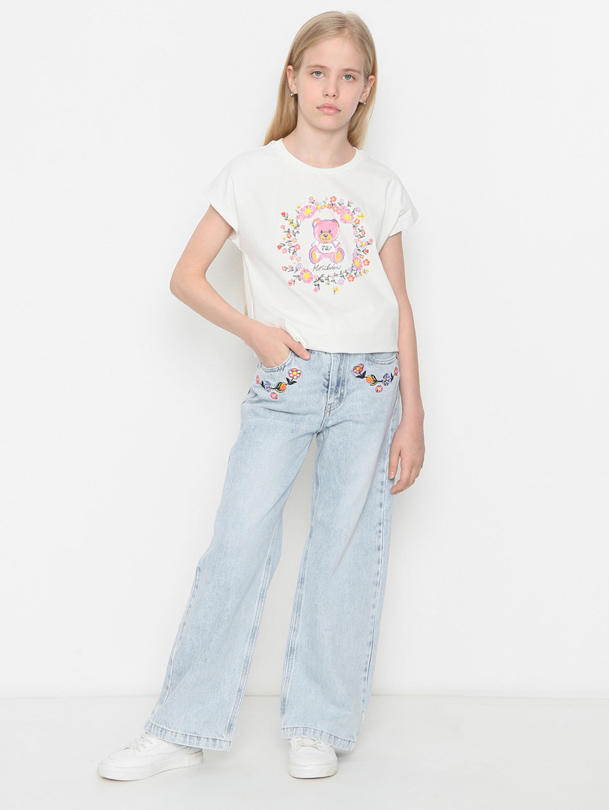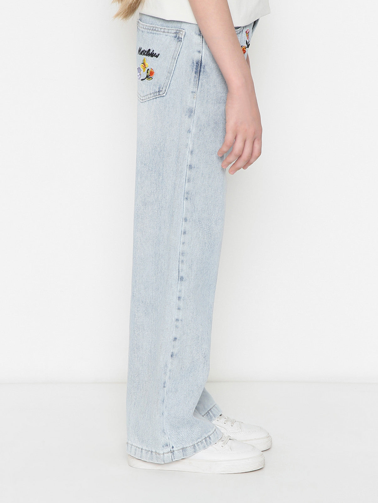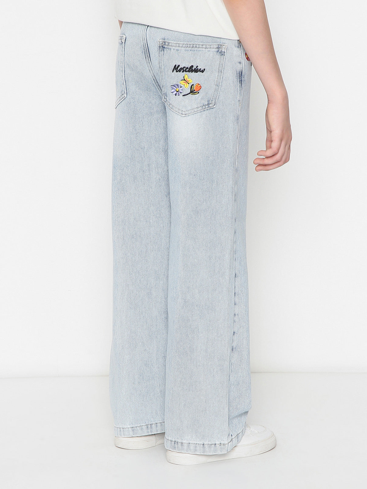 MOSCHINO Girls Cotton Jeans with Embroidery